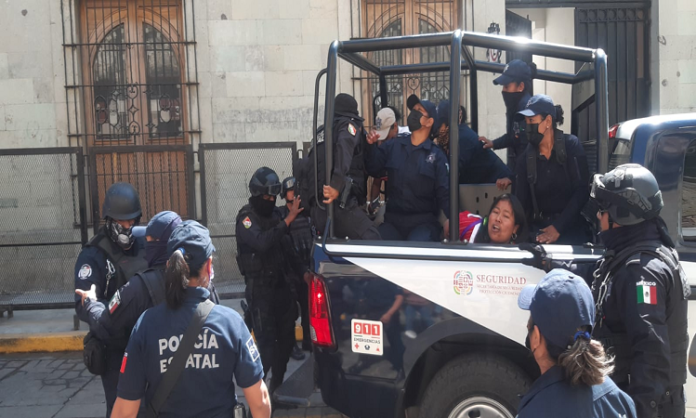 Pese a lo anterior, la líder triqui Lorena Merino, no atendió el planteamiento y esta mañana fue desalojada a empeñones por elementos de la Policía Estatal.