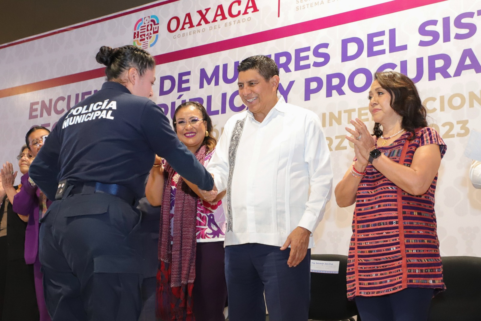 El Gobernador de Oaxaca Salomón Jara Cruz y la Presidenta Honoraria del Sistema DIF Oaxaca, Irma Bolaños Quijano, encabezaron el Encuentro de Mujeres del Sistema Estatal de Seguridad Pública y Procuración de Justicia, en donde ratificaron el compromiso y voluntad de este gobierno para incrementar la participación de las mujeres en todos los procesos de toma de decisiones, especialmente en materia de prevención, solución de conflictos, procuración y administración de justicia y labores de seguridad e inteligencia.