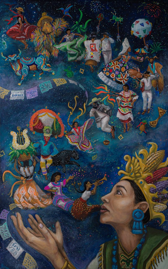 El Jurado Calificador responsable de la elección de la imagen oficial de las festividades de “Julio, Mes de la Guelaguetza 2023” informó que la obra denominada “El Festejo de Centéotl” realizada por Malinali Yuma García Díaz será la que ilustre estas actividades.