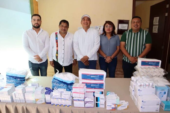 El secretario de Administración, Antonino Morales Toledo atestiguó la entrega de 300 unidades de diversos medicamentos y material de curación a estos espacios de para dar atención médica oportuna al personal que labora en ambos complejos.