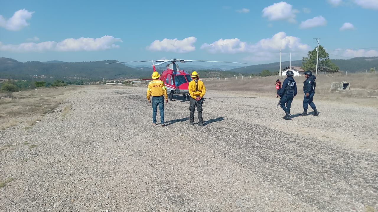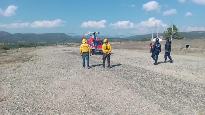 La aeronave trasladó a los jefes de brigadas de la Coesfo y de la Comisión Nacional Forestal (Conafor) para realizar el sobrevuelo y evaluar el incendio, así como para ubicar puntos estratégicos para el combate.