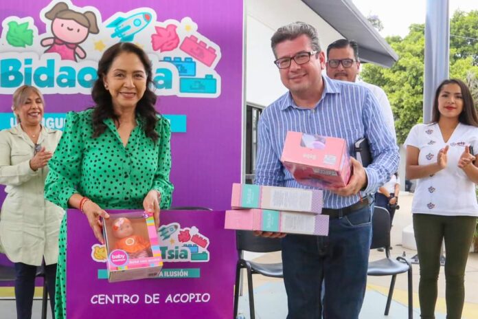 Empresarios, funcionariado, diputados y diputadas de la LXV Legislatura del Honorable Congreso del Estado se sumaron a la convocatoria realizada por Irma Bolaños Quijano, presidenta honoraria del Sistema DIF Oaxaca para realizar su donación de juguetes como parte de la campaña “Bidao Tsia, un juguete, una ilusión”, que concluirá el 25 de abril.