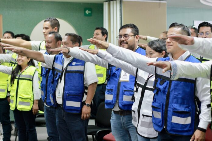 El director de Investigación, Diagnóstico y Gestión de Riesgos, Daniel Cruz Zaragoza, en representación del titular de la Coordinación Estatal de Protección Civil y Gestión de Riesgos, realizó la toma de protesta a quienes integran la Unidad conformada por una persona responsable del inmueble, 18 coordinadores, nueve jefes de piso y 96 brigadistas.