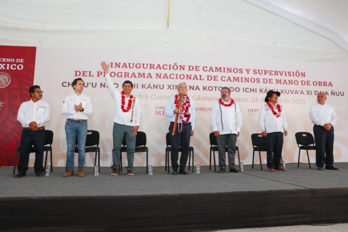 El Presidente Andrés Manuel López Obrador destacó que en este año se construyen 50 caminos artesanales en Oaxaca y que se iniciará la construcción de los 31 que se tenían programados iniciar en el año 2024 para que se terminen antes de que concluya su mandato.