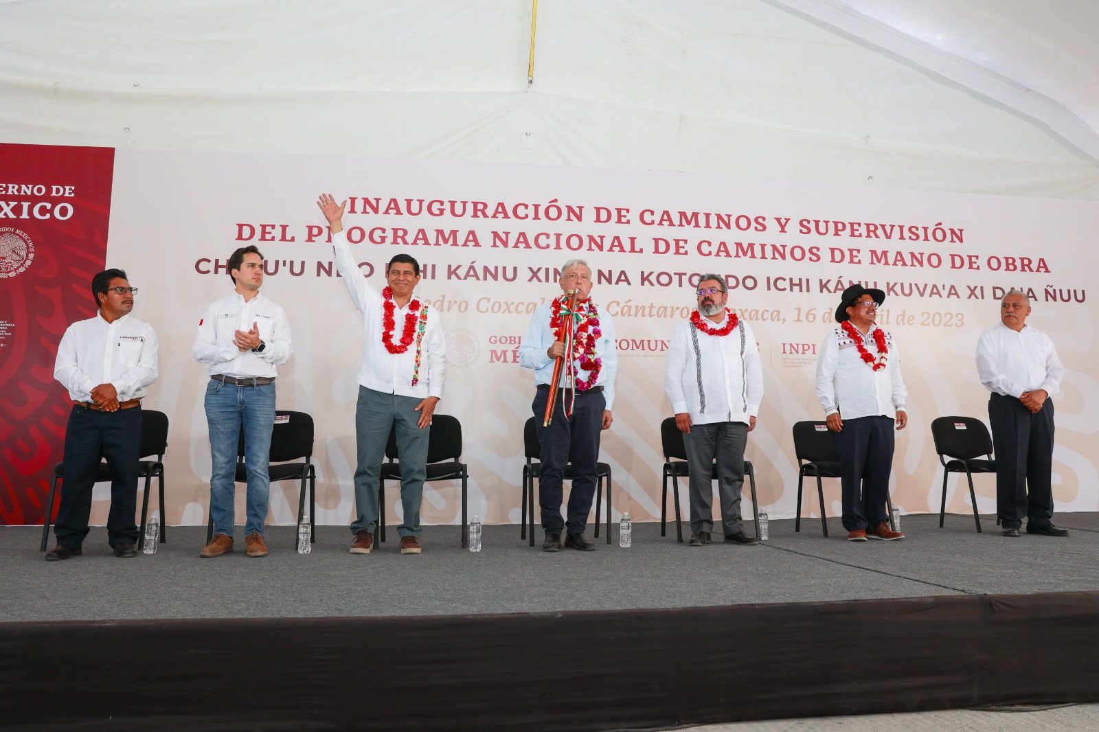 Acompañados del titular de la Secretaría de Infraestructuras, Comunicaciones y Transportes (SICT) Jorge Nuño Lara, el director del Banco Nacional de Obras y Servicios, Jorge Mendoza Sánchez y el titular del Instituto Nacional de los Pueblos Indígenas (INPI), Adolfo Regino Montes, así como el edil de Coxcaltepec, Eleazar García Jiménez y el presidente de Santiago Huauclilla, Pablo Pérez Guizado, los mandatarios coincidieron en que estos caminos reactivan la economía de los pueblos de la Mixteca y crearon empleos temporales durante tres años de trabajo comunitario con hombres y mujeres de la región.