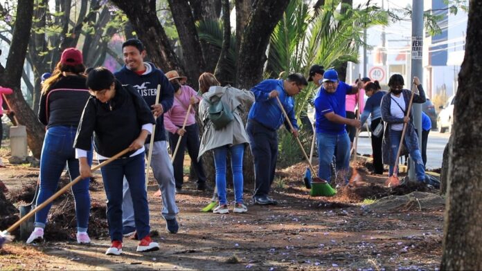 Las acciones de limpieza y embellecimiento urbano constaron de barrido, limpieza de jardineras, retiro de maleza y escombros, así como la recolección de los desechos orgánicos e inorgánicos.