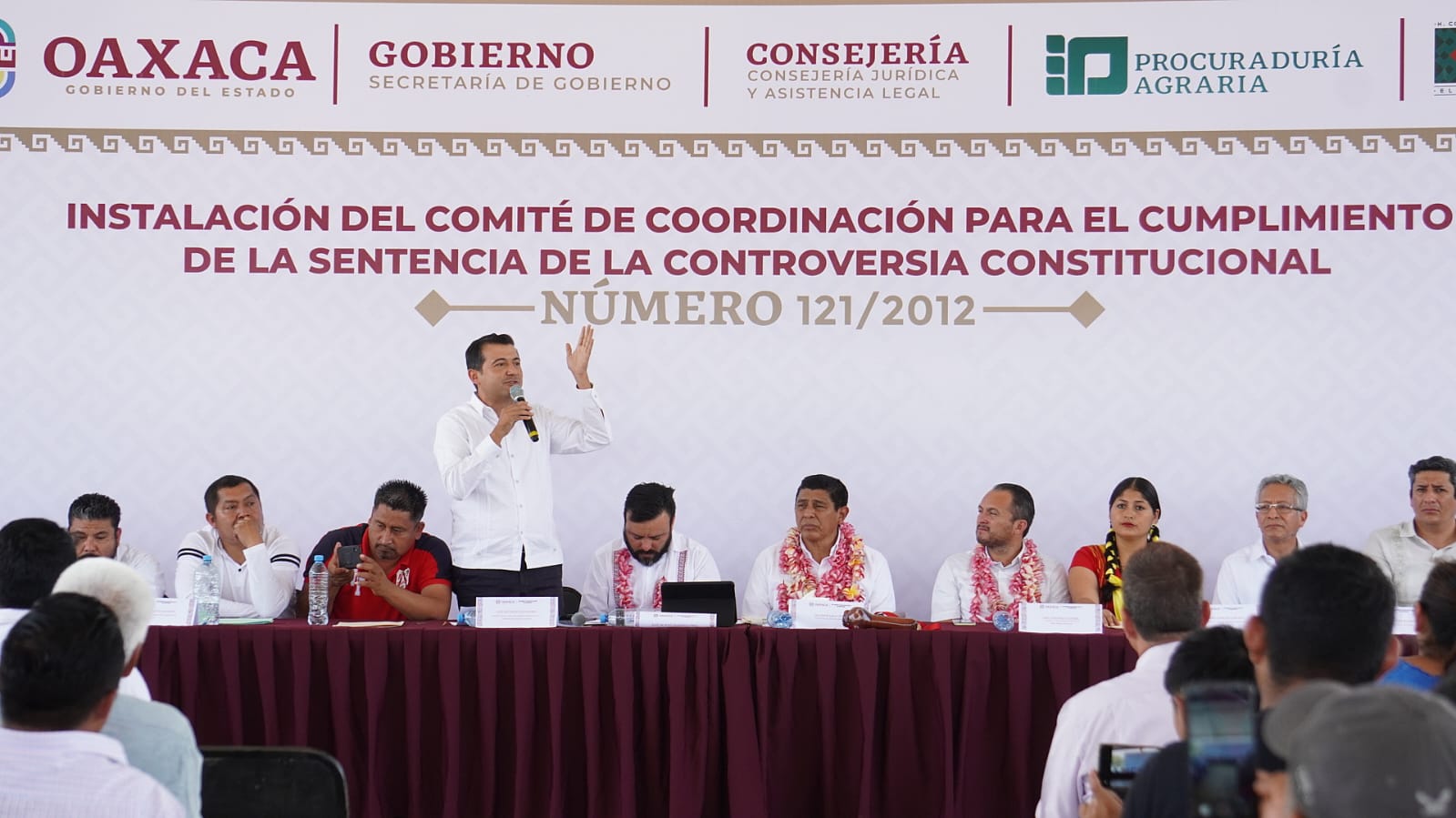 Oaxaca de Juárez, Oax. 20 de abril de 2023.- Ante la presencia de servidoras y servidores de los tres poderes de Oaxaca, el gobernador Salomón Jara Cruz, presidió en Santa María Chimalapa la instalación del Comité de Coordinación para el Cumplimiento de la sentencia de la Controversia Constitucional emitida por la Suprema Corte de Justicia de la Nación (SCJN).