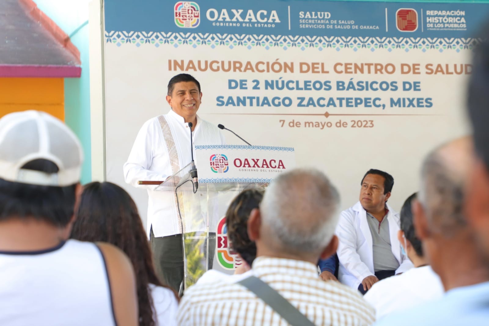 Santiago Zacatepec, Oax. 7 de mayo de 2023.- Para cumplir con la reparación histórica de los pueblos en la zona Mixe, el Gobernador del Estado Salomón Jara Cruz inauguró el nuevo Centro de Salud de dos Núcleos Básicos que garantizará el derecho humano a este servicio para habitantes de esta región.
