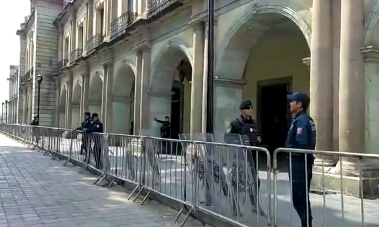 Luego de los hechos registrados el día de ayer, elementos de la policía estatal blindaron los accesos a Palacio de Gobierno.