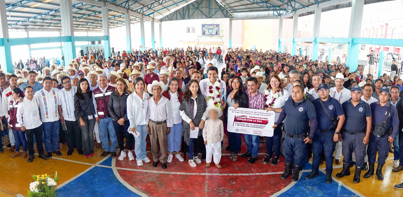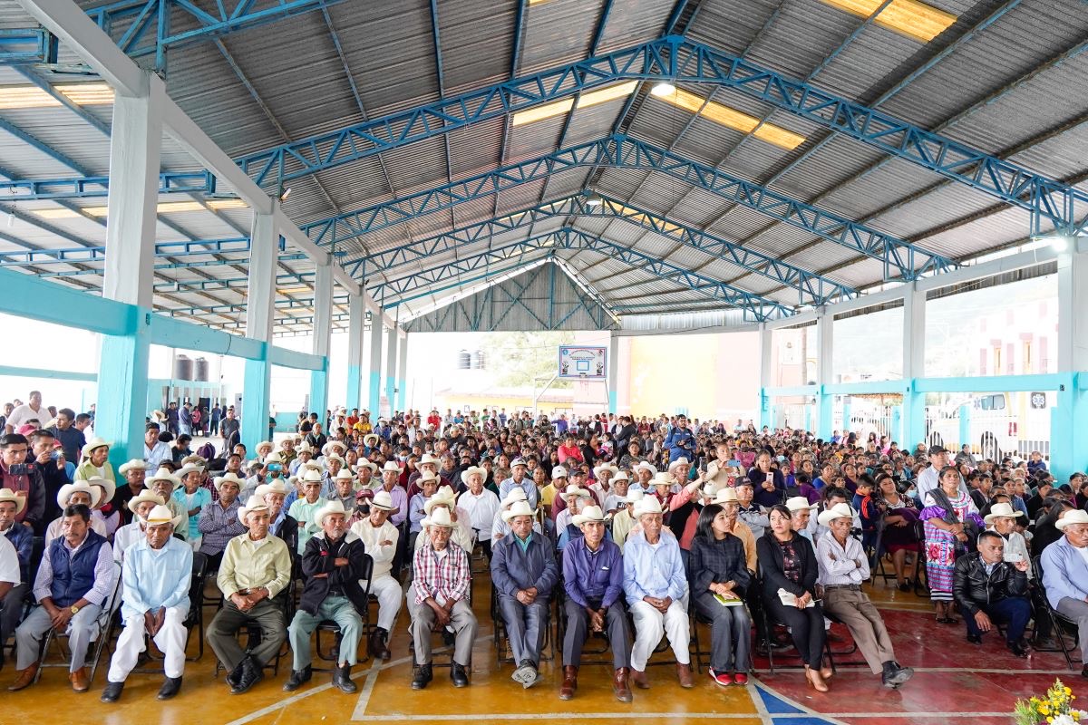 En este lugar donde predominan los hablantes de la lengua mazateca, el mensaje del Gobernador se tradujo para que fuera escuchado por todas las personas que se concentraron en la cancha pública de la presidencia municipal.