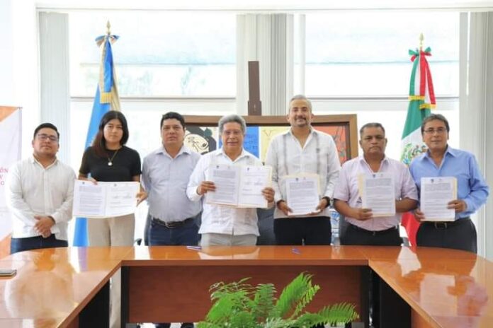 El convenio fue suscrito por el coordinador general de Educación Media Superior y Superior, Ciencia y Tecnología del Estado de Oaxaca, Alcide García Guzmán y por el rector de la UABJO, Cristian Eder Carreño López, durante un acto celebrado en el Salón de Ex rectores de la Máxima Casa de Estudios de Oaxaca.