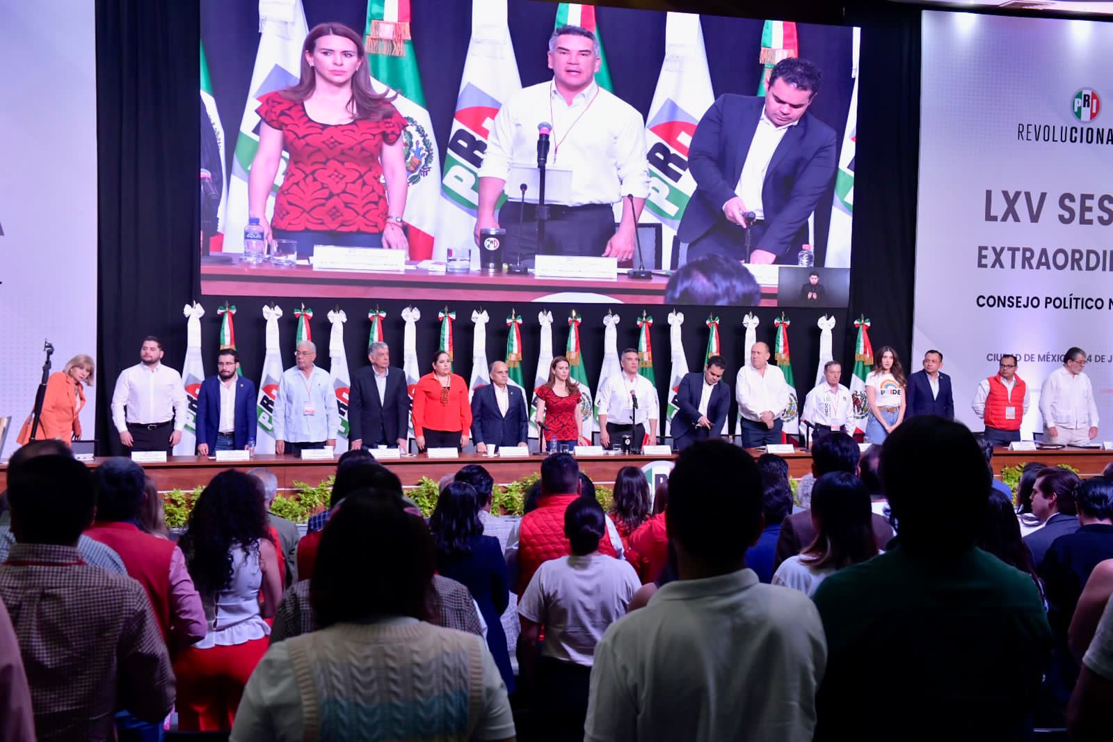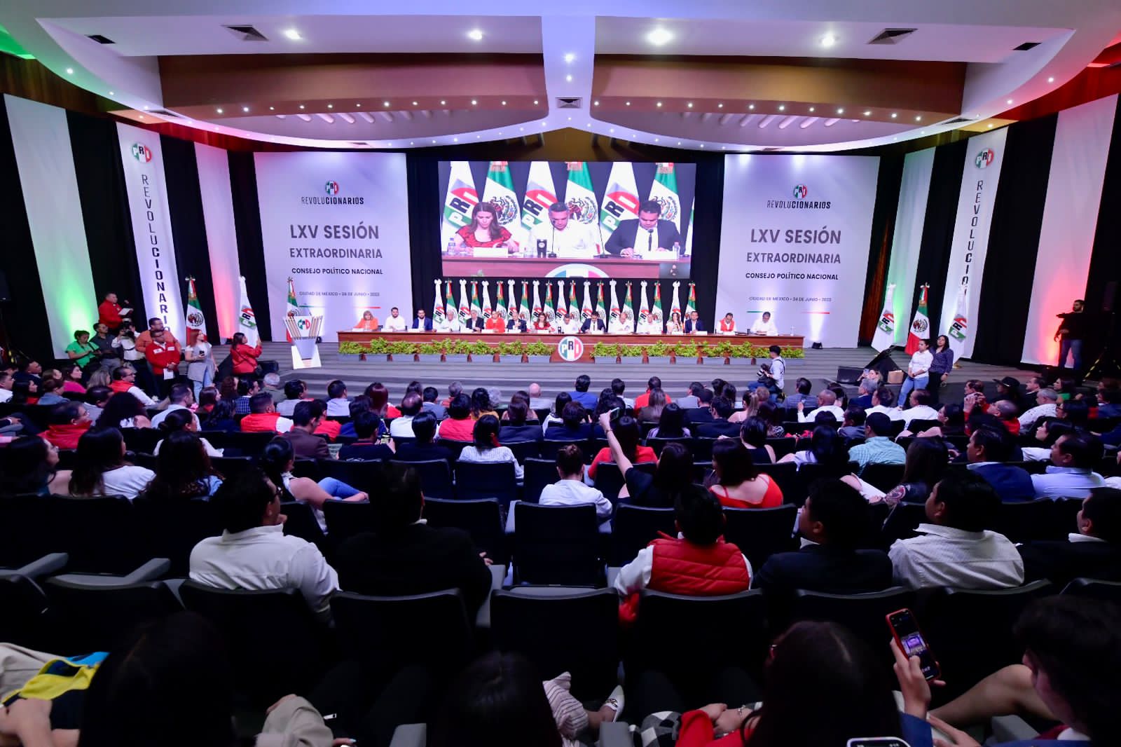 El Presidente Alejandro Moreno encabezó la LXV Sesión Extraordinaria del CPN, en compañía de la Secretaria General del CEN, Carolina Viggiano; del Secretario Técnico del CPN, Pablo Angulo; de los Coordinadores Parlamentarios en la Cámara de Diputados, Rubén Moreira y en el Senado de la República, Manuel Añorve; de integrantes de la dirigencia priista, legisladores de ambas Cámaras, así como líderes de sectores y organizaciones.