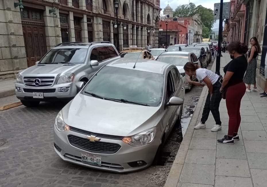 La tarde de este martes otro automóvil sufrió averías al haber caído en el registro de aguas pluviales sin tapadera, esto en la calle de Independencia.