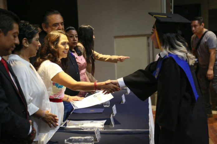 La Presidenta Honoraria del Sistema para el Desarrollo Integral de la Familia (DIF) Oaxaca, Irma Bolaños Quijano, asistió como invitada de honor a la ceremonia solemne de graduación de la Generación 2019-2023 de las licenciaturas en Terapia Física y Terapia Ocupacional de la Facultad de Medicina y Cirugía de la Universidad Autónoma Benito Juárez de Oaxaca (UABJO).