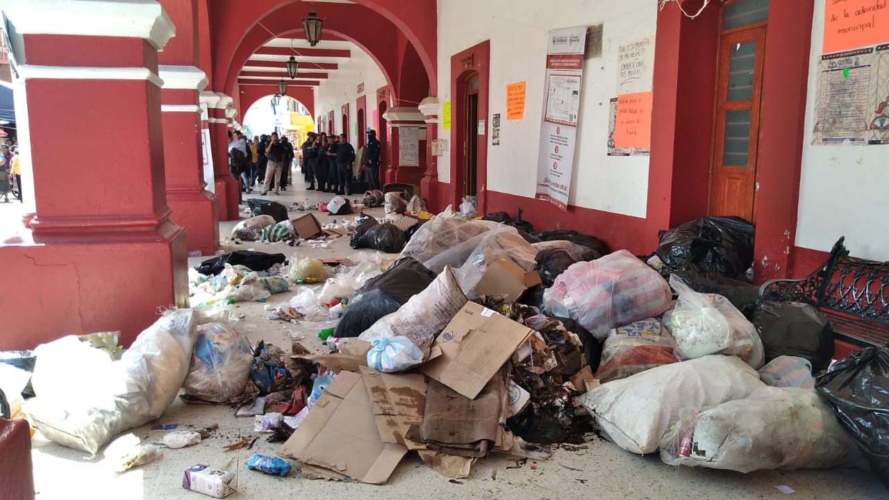 Indignados por no tener un lugar donde tirar la basura, los habitantes de Zaachila protestaron por segunda ocasión tirándola en el Palacio Municipal y en la propia casa del edil Rigoberto Chacón.