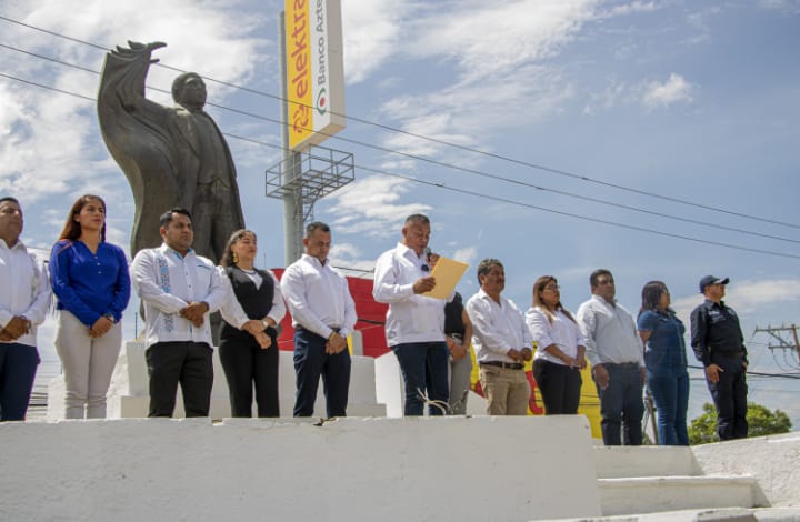 Frente a la efigie elevada en honor al ilustre oaxaqueño, ubicada en el boulevard Guadalupe Hinojosa de esta demarcación,