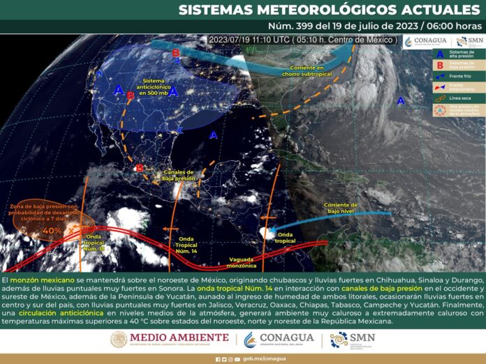 El monzón mexicano en el noroeste de la República Mexicana, las ondas tropicales