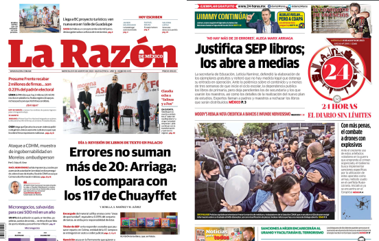 InicioOpinión OpiniónPortada Las de ocho columnas nacionales: Justifica SEP libros: Los abre a medias Por Redacción RIO 9 agosto, 2023 08:20 0 626 FacebookXPinterestWhatsApp Estas son las noticias de los principales periódicos nacionales este 8 de agosto: Cuota FacebookXPinterestWhatsApp Artículo anteriorOnda tropical 20 seguirá originando lluvias fuertes sobre el occidente de MéxicoArtículo siguienteEl Zumbido del Moscardón: La CNTE: No a los Libros de Texto Redacción RIO Articulos relacionados Estado Comuneros de Chimalapas alistan amparos y marcha en CDMX tras fallo agrario adverso Policiaca Fiscalía de Oaxaca ejecuta tres órdenes de aprehensión por robo, ocurridos en distintas regiones del estado Sin categoría Atienden bomberos incendio en tiradero clandestino de San Agustín Etla; vecinos denuncian daños ambientales DEJA UNA RESPUESTA Cancelar respuesta Comentario: Por favor ingrese su comentario! Nombre:* Por favor ingrese su nombre aquí Correo electrónico:* ¡Has introducido una dirección de correo electrónico incorrecta! Por favor ingrese su dirección de correo electrónico aquí Sitio web: Guardar mi nombre, correo electrónico y sitio web en este navegador la próxima vez que comente. Siguenos...46,000FansMe gusta8,888SeguidoresSeguir56,777SuscriptoresSuscribirte _ Anuncio _ Ultimos articulos Estado Comuneros de Chimalapas alistan amparos y marcha en CDMX tras fallo agrario adverso Policiaca Fiscalía de Oaxaca ejecuta tres órdenes de aprehensión por robo, ocurridos en distintas regiones del estado Sin categoría Atienden bomberos incendio en tiradero clandestino de San Agustín Etla; vecinos denuncian daños ambientales Estado Rescata Marina a turista arrastrado por mar de fondo en Huatulco Estado Domingo sangriento en carretera; muere mujer en volcadura en la carretera 175, en Ejutla Cargar más