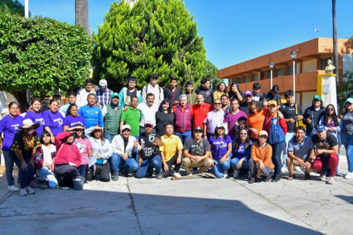 Junto a las y los alumnos, directivos, docentes y voluntarios, el diputado Luis Alfonso Silva Romo participó en el tequio que tuvo como objetivo el mejorar las instalaciones de este plantel educativo.