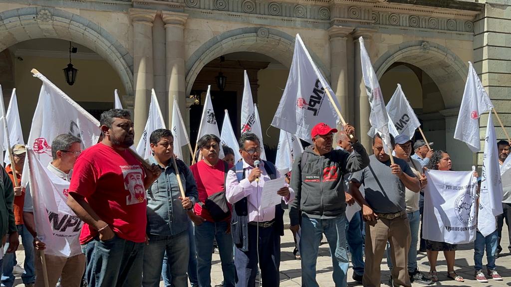 Pobladores de Santa María Jacatepec, se manifestaron frente al Palacio de Gobierno, en donde denunciaron presunto despojo de predios en las colonias de San Juan del Río y Vega del Sol, predios que fueron cedidos en 2005.