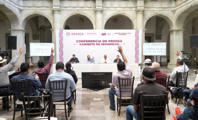 Integrantes del Gabinete de Seguridad de la administración estatal informaron sobre las 662 acciones estratégicas que se realizaron del 15 al 22 de agosto en las ocho regiones de la entidad, con el fin de garantizar la paz con justicia a la población oaxaqueña tal y como lo establece el Gobernador Salomón Jara Cruz.