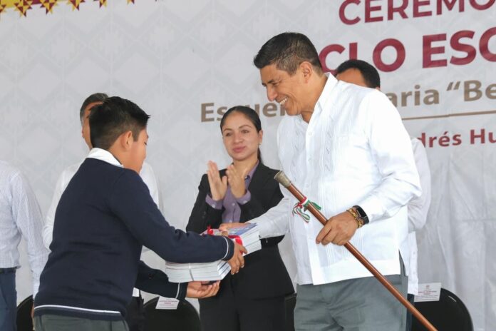 El Gobernador del Estado Salomón Jara Cruz, acompañado de la Presidenta Honoraria del Sistema para el Desarrollo Integral de la Familia (DIF) Oaxaca Irma Bolaños Quijano, inauguró en la Escuela Primaria “Benito Juárez” del municipio de San Andrés Huayápam el ciclo escolar 2023 – 2024.