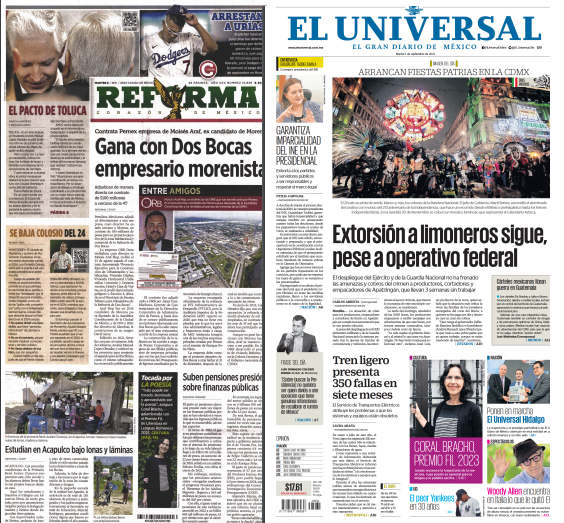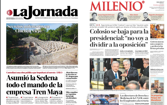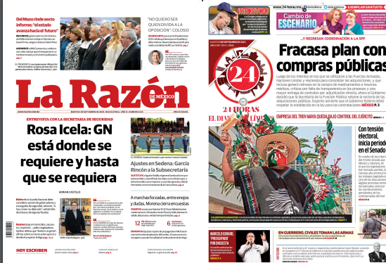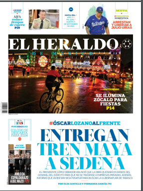 InicioOpinión OpiniónPortada Las de ocho columnas nacionales: Entregan Tren Maya a Sedena Por Redacción RIO 5 septiembre, 2023 07:55 0 787 FacebookXPinterestWhatsApp Estas son las noticias de los principales periódicos nacionales este 5 de septiembre: Cuota FacebookXPinterestWhatsApp Artículo anteriorDeclara Congreso alfarería oaxaqueña como Patrimonio Cultural Inmaterial del EstadoArtículo siguientePrevén lluvias de intensidad variable en la mayor parte del estado Redacción RIO Articulos relacionados Estado Detienen a presunto ladrón y recuperan objetos robados de capilla en Putla Opinión Levantar la bandera de la palabra Policiaca Fiscalía, Gabinete de Seguridad y C5i detienen a dos que distribuían drogas en presentación de dulces en la capital DEJA UNA RESPUESTA Cancelar respuesta Comentario: Por favor ingrese su comentario! Nombre:* Por favor ingrese su nombre aquí Correo electrónico:* ¡Has introducido una dirección de correo electrónico incorrecta! Por favor ingrese su dirección de correo electrónico aquí Sitio web: Guardar mi nombre, correo electrónico y sitio web en este navegador la próxima vez que comente. Siguenos...46,000FansMe gusta8,888SeguidoresSeguir56,777SuscriptoresSuscribirte _ Anuncio _ Ultimos articulos Estado Detienen a presunto ladrón y recuperan objetos robados de capilla en Putla Opinión Levantar la bandera de la palabra Policiaca Fiscalía, Gabinete de Seguridad y C5i detienen a dos que distribuían drogas en presentación de dulces en la capital Locales Dos bloqueos en vialidades tras asesinato de líder transportista de CATEM Estado Prevén lluvias aisladas y ambiente caluroso; alertan por mar de fondo Cargar más