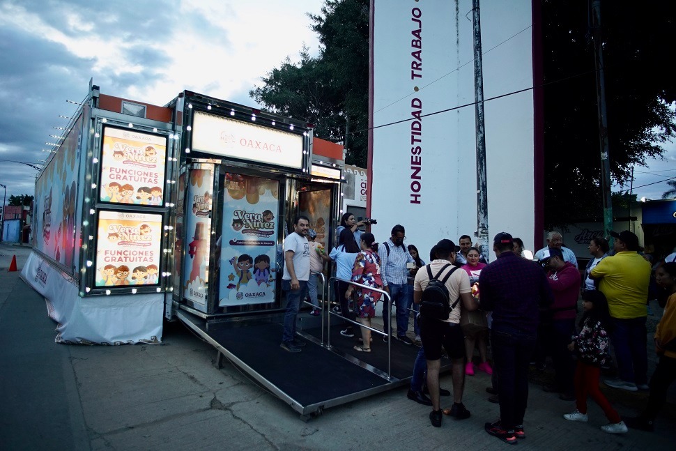 Cabe destacar que el proyecto del Cine Gob inició en el mes de julio durante las fiestas de la Guelaguetza, y a la fecha ha permitido que más de 11 mil niñas y niños puedan disfrutar y conocer de la experiencia del cine móvil.
