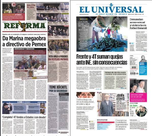 InicioEstadoLocales LocalesPortada Las de ocho columnas nacionales: Candidatos a 2024, con encuestas y tómbolas Por Redacción RIO 14 septiembre, 2023 07:55 0 492 FacebookXPinterestWhatsApp Estas son las noticias de los principales periódicos nacionales este 14 de septiembre: Cuota FacebookXPinterestWhatsApp Artículo anteriorEfeméridesRIO: Incorporación del estado de Chiapas al Pacto FederalArtículo siguienteLluvias ligeras y tormentas aisladas en la entidad es el pronóstico para este jueves Redacción RIO Articulos relacionados Sin categoría ¡TODAS Y TODOS A LA FERIA DEL TEJATE 2026 CON EL BINNIBUS! Locales ”AGUA PARA TODAS Y TODOS” LLEGA A POCHUTLA CON ENTREGA DE TINACOS Sin categoría Gobierno de Oaxaca fortalece el diálogo con trabajadores para construir acuerdos responsables DEJA UNA RESPUESTA Cancelar respuesta Comentario: Por favor ingrese su comentario! Nombre:* Por favor ingrese su nombre aquí Correo electrónico:* ¡Has introducido una dirección de correo electrónico incorrecta! Por favor ingrese su dirección de correo electrónico aquí Sitio web: Guardar mi nombre, correo electrónico y sitio web en este navegador la próxima vez que comente. Siguenos...46,000FansMe gusta8,888SeguidoresSeguir56,777SuscriptoresSuscribirte _ Anuncio _ Ultimos articulos Sin categoría ¡TODAS Y TODOS A LA FERIA DEL TEJATE 2026 CON EL BINNIBUS! Locales ”AGUA PARA TODAS Y TODOS” LLEGA A POCHUTLA CON ENTREGA DE TINACOS Sin categoría Gobierno de Oaxaca fortalece el diálogo con trabajadores para construir acuerdos responsables Estado Este viernes se pronostican lluvias y tormentas en Oaxaca: Protección Civil Comunicado Prisión preventiva a presuntos integrantes de célula criminal que operaba entre Oaxaca y Veracruz Cargar más