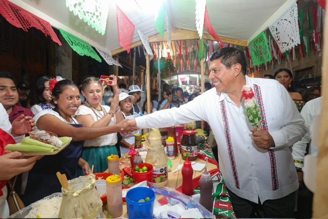La riqueza gastronómica que conforma la cultura mexicana se degustó durante la verbena que el Gobernador Salomón Jara Cruz inauguró previo a realizar el tradicional Grito de Independencia desde el Palacio de Gobierno.