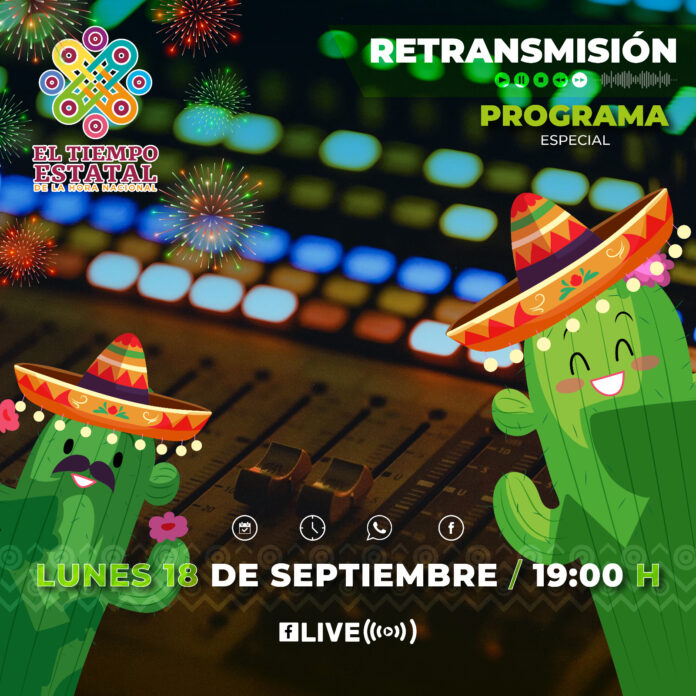 La retransmisión del programa podrán disfrutarla el día lunes 18 de septiembre a partir de las 19:00 horas, en la plataforma de Facebook Live de la página oficial: