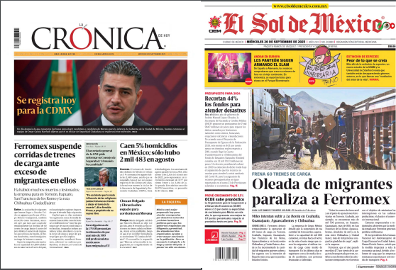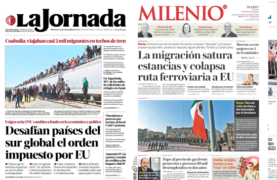 InicioEstadoLocales LocalesPortada Las de ocho columnas nacionales: Frena a trenes crisis migrante Por Maribel Martínez 20 septiembre, 2023 07:25 0 563 FacebookXPinterestWhatsApp Estas son las noticias de los principales periódicos nacionales este 20 de septiembre: Cuota FacebookXPinterestWhatsApp Artículo anteriorEfeméridesRIO: Día del JubiladoArtículo siguienteSe prevé baja probabilidad de lluvias para esta tarde en el estado Maribel Martínez Articulos relacionados Locales CECYTE PLANTEL 16 SAN PABLO VILLA DE MITLA SE SUMÓ AL FORO “SIN DROGAS, SALVAS TU VIDA” Locales Detiene FGEO a probable responsable de abuso sexual en la zona del Río Atoyac Locales Invita DIF Oaxaca a visita guiada inclusiva en la Zona Arqueológica de Mitla DEJA UNA RESPUESTA Cancelar respuesta Comentario: Por favor ingrese su comentario! Nombre:* Por favor ingrese su nombre aquí Correo electrónico:* ¡Has introducido una dirección de correo electrónico incorrecta! Por favor ingrese su dirección de correo electrónico aquí Sitio web: Guardar mi nombre, correo electrónico y sitio web en este navegador la próxima vez que comente. Siguenos...46,000FansMe gusta8,888SeguidoresSeguir56,777SuscriptoresSuscribirte _ Anuncio _ Ultimos articulos Locales CECYTE PLANTEL 16 SAN PABLO VILLA DE MITLA SE SUMÓ AL FORO “SIN DROGAS, SALVAS TU VIDA” Locales Detiene FGEO a probable responsable de abuso sexual en la zona del Río Atoyac Locales Invita DIF Oaxaca a visita guiada inclusiva en la Zona Arqueológica de Mitla Locales Despliega Policía Vial Estatal Operativo Semana Santa Segura 2026 Sin categoría Invita IMSS Oaxaca este fin de semana a vacunarse contra el Sarampión Cargar más