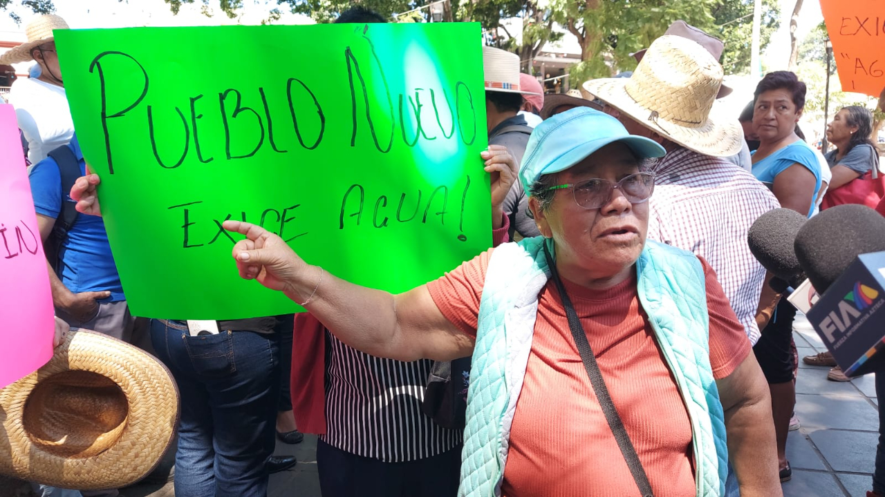 Vecinos de Pueblo Nuevo, protestaron este viernes en el zócalo de la ciudad, ante la falta de suministro de agua a los pobladores, acusaron que desde mayo tienen irregularidades y no se les da una solución.