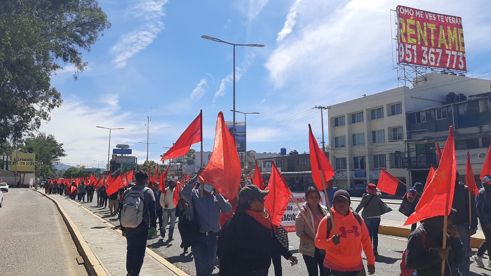 Así mismo demandaron justicia por la muerte del militante de Sol Rojo, Luis Armando Fuentes Aquino; el cumplimiento a las medidas cautelares de Copala y defensa de los derechos del pueblo de San Blas Atempa.