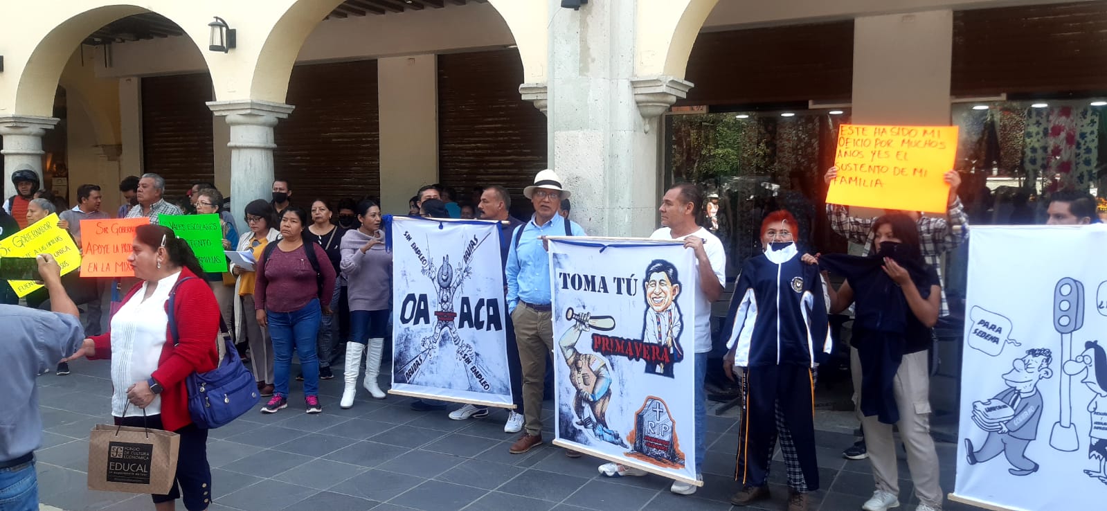Proveedores de uniformes escolares agremiados al grupo Tequileros 8 Regiones, protestaron este jueves en Palacio de Gobierno gobierno.