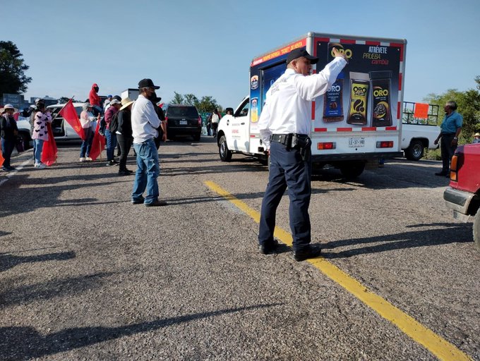 Autoridades auxiliares de Santa María Tutla, Santiago del Río y San Antonio de León de San Andrés, perteneciente a San Andrés Dinocuiti, bloquearon la carretera federal 190 en el crucero de Tezoatlán de Segura y Luna.