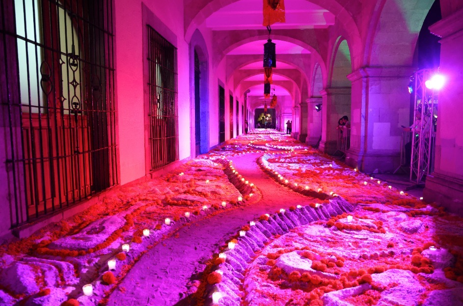 En los altares y tapetes, las personas pueden conocer la variedad de ofrendas que se colocan durante estas fechas, así como los rasgos que distinguen las diversas manifestaciones culturales de Oaxaca.