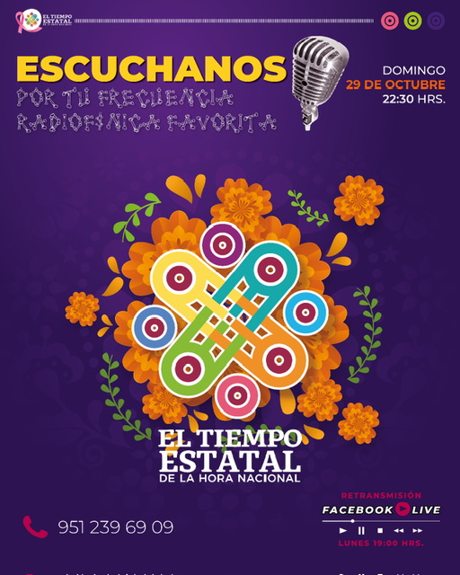 Oaxaca de Juárez, Oax. 28 de octubre de 2023.- En el marco de la celebración del Día de Muertos, festividad que refleja la visión que los pueblos y comunidades tienen de este suceso a través de sus costumbres y tradiciones, El Tiempo Estatal de la Hora Nacional ha preparado un programa especial para compartir la grandeza de La fiesta más viva de todas en voz de sus protagonistas.
