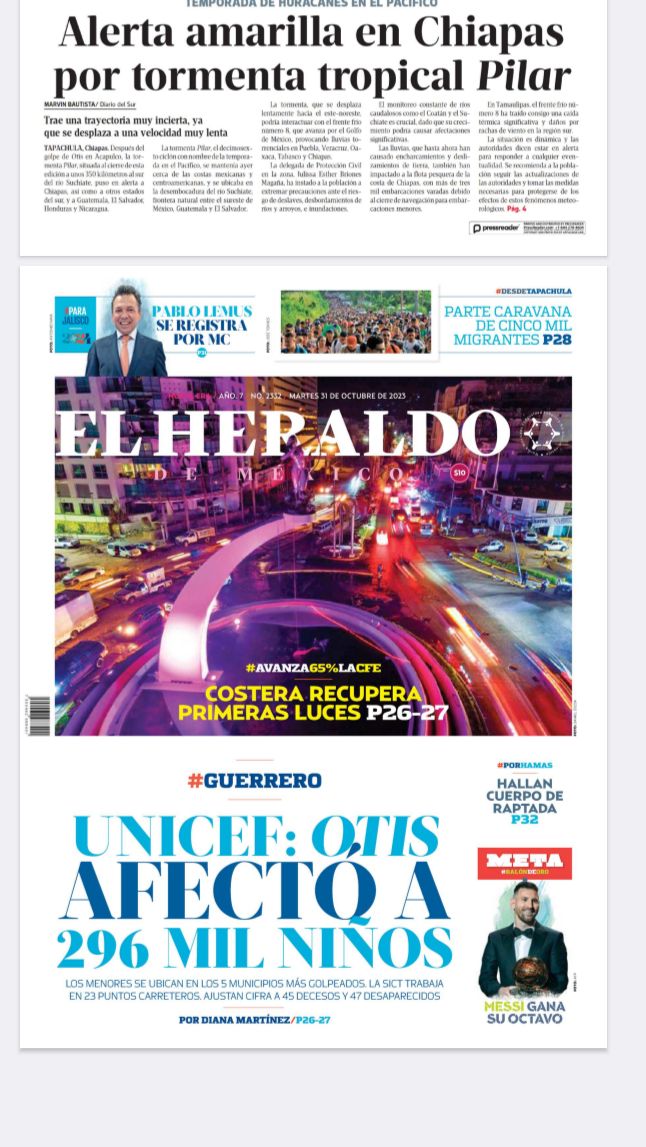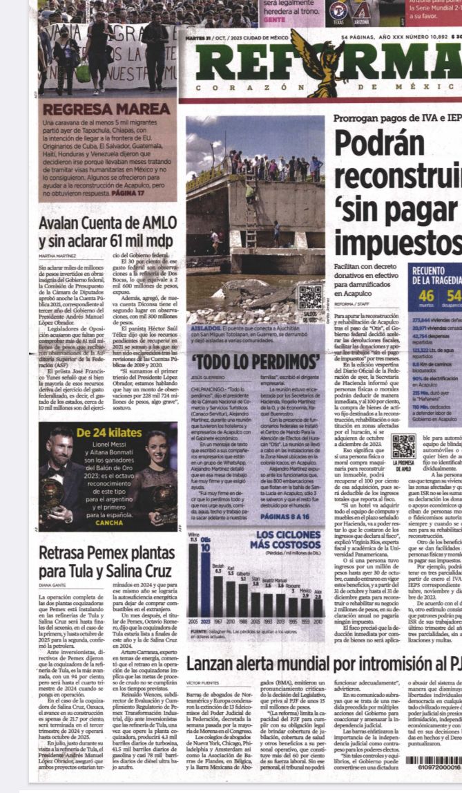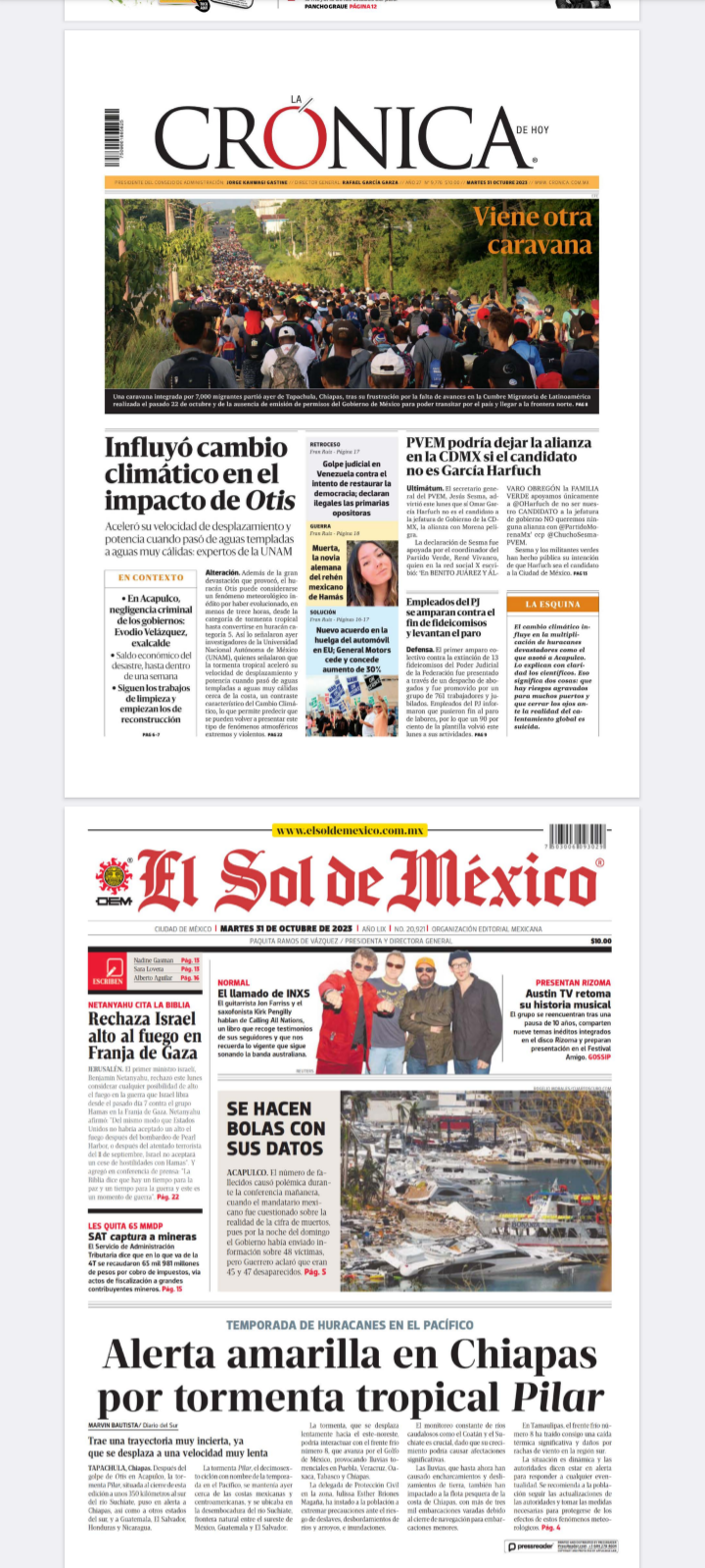 InicioOpinión OpiniónPortada Las de ocho columnas nacionales: Anuncia Hacienda estímulos fiscales por Otis Por Redacción RIO 31 octubre, 2023 07:17 0 1182 FacebookXPinterestWhatsApp Estas son las noticias de los principales periódicos nacionales el día de hoy 31 de octubre: Cuota FacebookXPinterestWhatsApp Artículo anteriorEfeméridesRIO: Francisco Villa ataca y toma Ciudad Camargo, ChihuahuaArtículo siguienteFrente frío número 8 y tormenta tropical Pilar ocasionarán lluvias en algunas regiones Redacción RIO Articulos relacionados Locales Presenta Secretaría de Honestidad Plan Anual de Auditorías 2026 Policiaca Obtiene FGEO vinculación a proceso en contra de dos hombres por homicidio Nacional Lanzan billete de lotería por los 100 años de la Federación Mexicana de Golf DEJA UNA RESPUESTA Cancelar respuesta Comentario: Por favor ingrese su comentario! Nombre:* Por favor ingrese su nombre aquí Correo electrónico:* ¡Has introducido una dirección de correo electrónico incorrecta! Por favor ingrese su dirección de correo electrónico aquí Sitio web: Guardar mi nombre, correo electrónico y sitio web en este navegador la próxima vez que comente. Siguenos...46,000FansMe gusta8,888SeguidoresSeguir56,777SuscriptoresSuscribirte _ Anuncio _ Ultimos articulos Locales Presenta Secretaría de Honestidad Plan Anual de Auditorías 2026 Policiaca Obtiene FGEO vinculación a proceso en contra de dos hombres por homicidio Nacional Lanzan billete de lotería por los 100 años de la Federación Mexicana de Golf Estado Ratifica SSO construcción de un nuevo Hospital General en Ciudad Salud Locales ¡Vota por Oaxaca en Lo Mejor de México 2026! Cargar más
