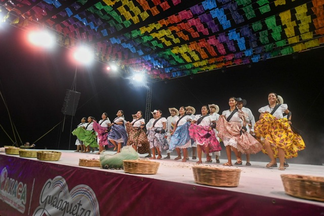 El pueblo mixteco de San Pedro Pochutla se presentó como una comunidad de comerciantes y pescadores, y al ritmo de sus chilenas invitó a la multitud a sentir la brisa del mar en Zipolite y Puerto Ángel; al igual que la delegación de San Juan Cacahuatepec, que con sus sones, chilenas y enérgico zapateado mostró el orgullo del pueblo amuzgo.