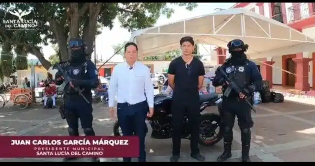 El presidente informó que la corporación detuvo a Juan Mario «N», alias «El Chanclas», como presunto responsable del delito de robo, cometido en el municipio de Oaxaca de Juárez y difundido en redes sociales, luego de que fuera grabado por una cámara de seguridad de un negocio.