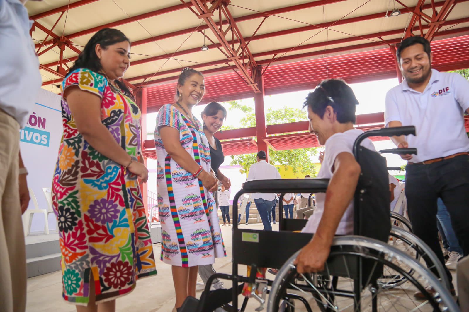 En este marco, la Presidenta Honoraria del organismo, acompañada de autoridades municipales y funcionariado, encabezó la entrega de 127 aparatos funcionales y de movilidad como sillas de ruedas estándar y de Parálisis Cerebral Infantil (PCI), bastones, andaderas y muletas.