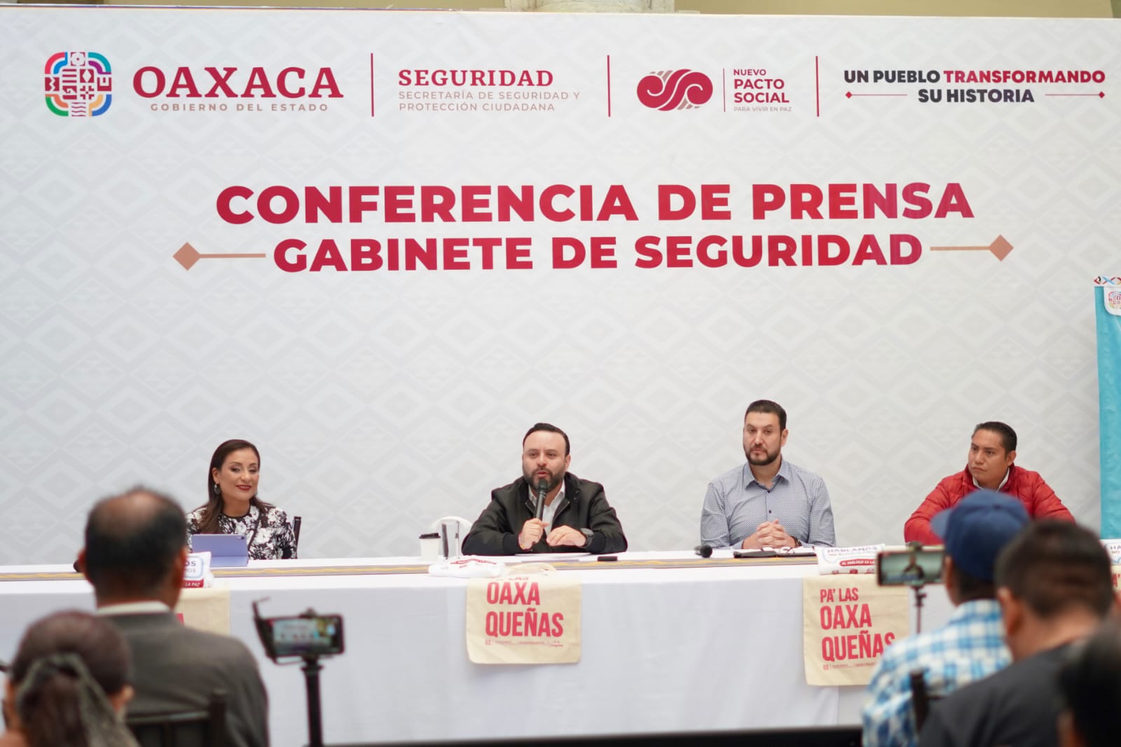Con el objetivo de seguir construyendo un Nuevo Pacto Social, con paz y justicia para las y los oaxaqueños, las instituciones integrantes del Gabinete de Seguridad del Gobierno de Oaxaca llevan a cabo acciones estratégicas conjuntas, cuyos resultados son informados semanalmente en conferencia de prensa.