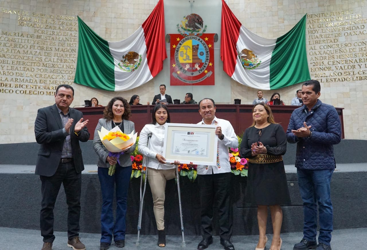 San Raymundo Jalpan, Oax. 20 de diciembre de 2023.- Por la destacada participación de la deportista Gilda Andrea Hernández Ramírez en paraciclismo, en los Juegos Parapanamericanos 2023 celebrados en Santiago, Chile, las y los diputados de la LXV Legislatura local reconocieron a la oaxaqueña, quien ha sobresalido a nivel nacional e internacional.