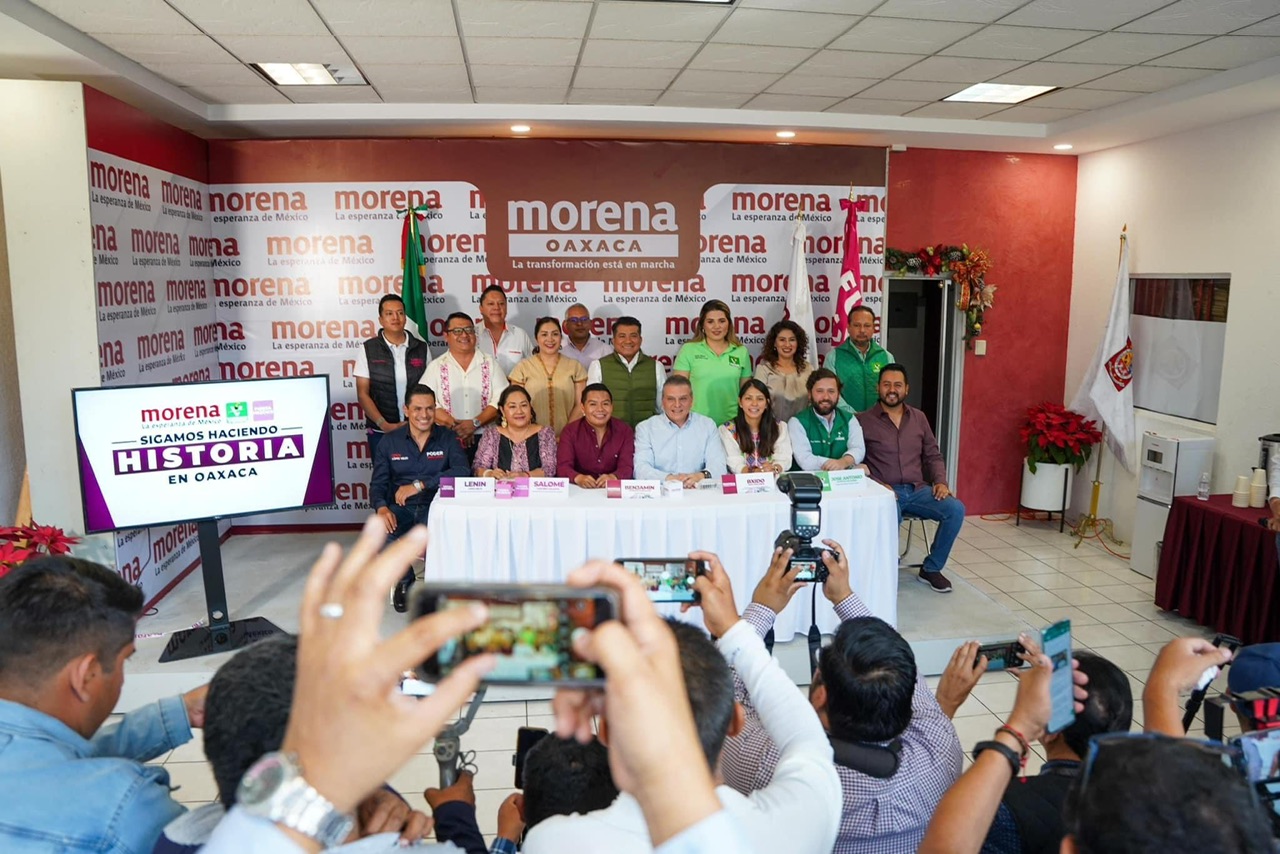 En la conferencia de prensa, Benjamín Viveros Montalvo (@BenjaViverosOax) dirigente estatal de Morena, reveló que en la elección federal van solos en tres distritos ( Miahuatlán de Porfirio Díaz, Teotitlán de Flores Magón y Salina Cruz). El resto será en coalición.