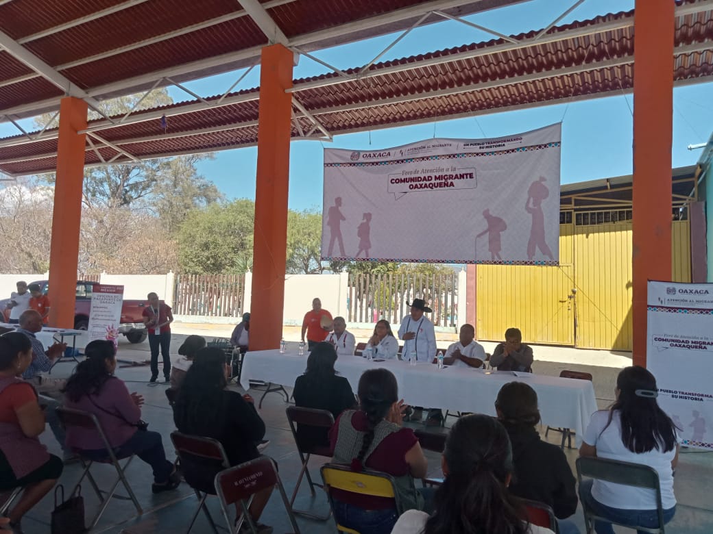 Para identificar las necesidades y demandas de las familias de personas migrantes, además de acercar información y servicios a las comunidades, en el municipio de Santiago Apóstol iniciaron los Foros de Atención a la Comunidad Migrante Oaxaqueña, con la participación de dependencias del Gobierno del Estado y autoridades municipales.