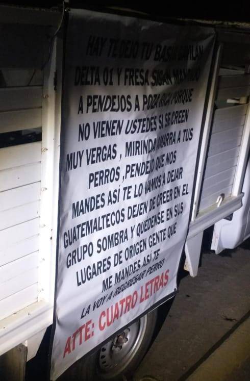En el sitio fueron localizadas dos lonas con mensajes intimidantes, las cuales estaban firmadas por un grupo delincuencial que opera en la ciudad de Poza Rica.