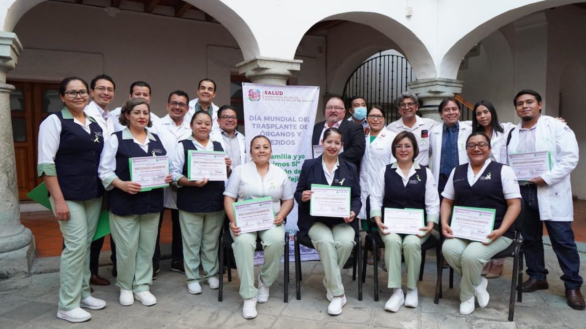 De manera simbólica, como representante del personal de enfermería del equipo de trasplantes recibió el reconocimiento la enfermera Especialista Quirúrgica Guadalupe Clara Girón Cruz. De igual forma, se entregó un galardón al equipo multidisciplinario de trasplantes del Hospital Regional de Alta Especialidad de Oaxaca, a la directora Alba Vásquez Palacios.