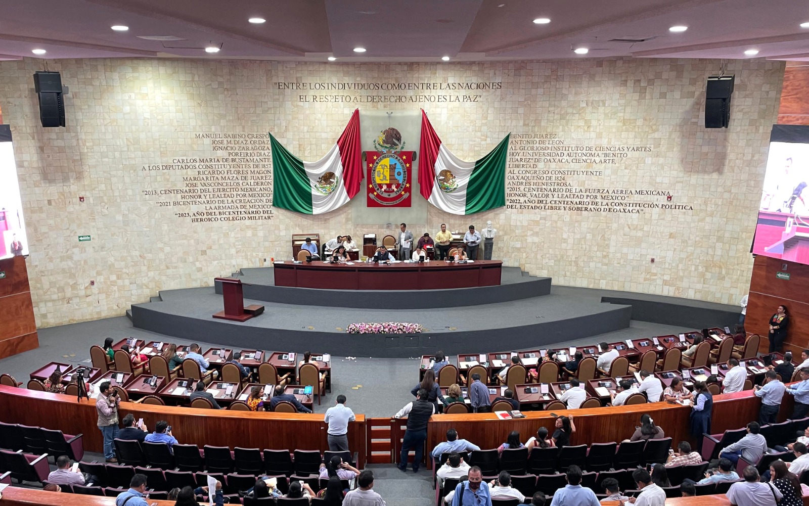 Con 32 votos a favor, el Pleno de la LXV Legislatura local aprobó, en lo general y en lo particular, la reforma al artículo 390 del Código Penal de Oaxaca, para sancionar con prisión y económicamente a quienes encubran delitos de feminicidio y homicidio doloso de mujeres.