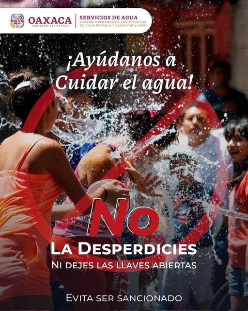 Oaxaca de Juárez, Oax., 29 de marzo de 2024.- En el marco del periodo de Semana Santa, el Sistema Operador de los Servicios de Agua Potable y Alcantarillado (Soapa) exhorta a la población a hacer un uso correcto del vital líquido y evitar sanciones durante el Sábado de Gloria.